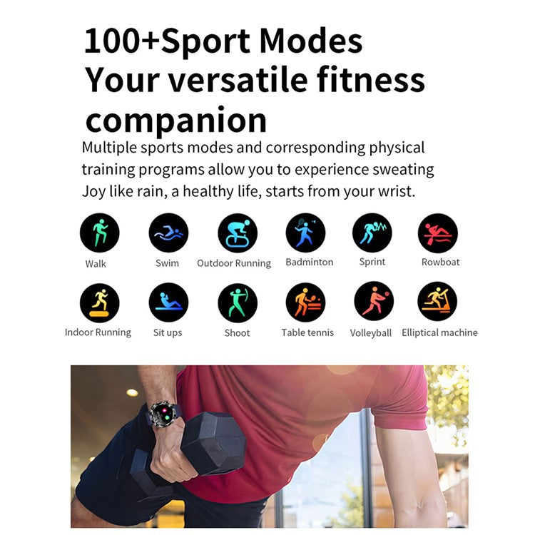 The Galen SmartWatch includes ECG, blood pressure, and blood oxygen tracking, plus sleep and activity monitoring. It supports non-invasive glucose checks, 100+ sport modes, and body composition metrics like fat %, muscle mass, and blood lipids. You can make calls, send SOS alerts, and use its built-in AI Voice Assistant for health support and illness detection.